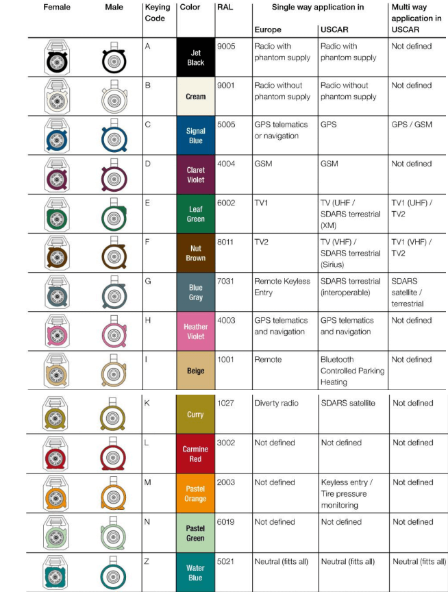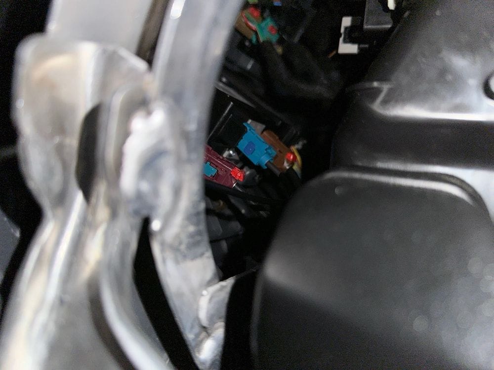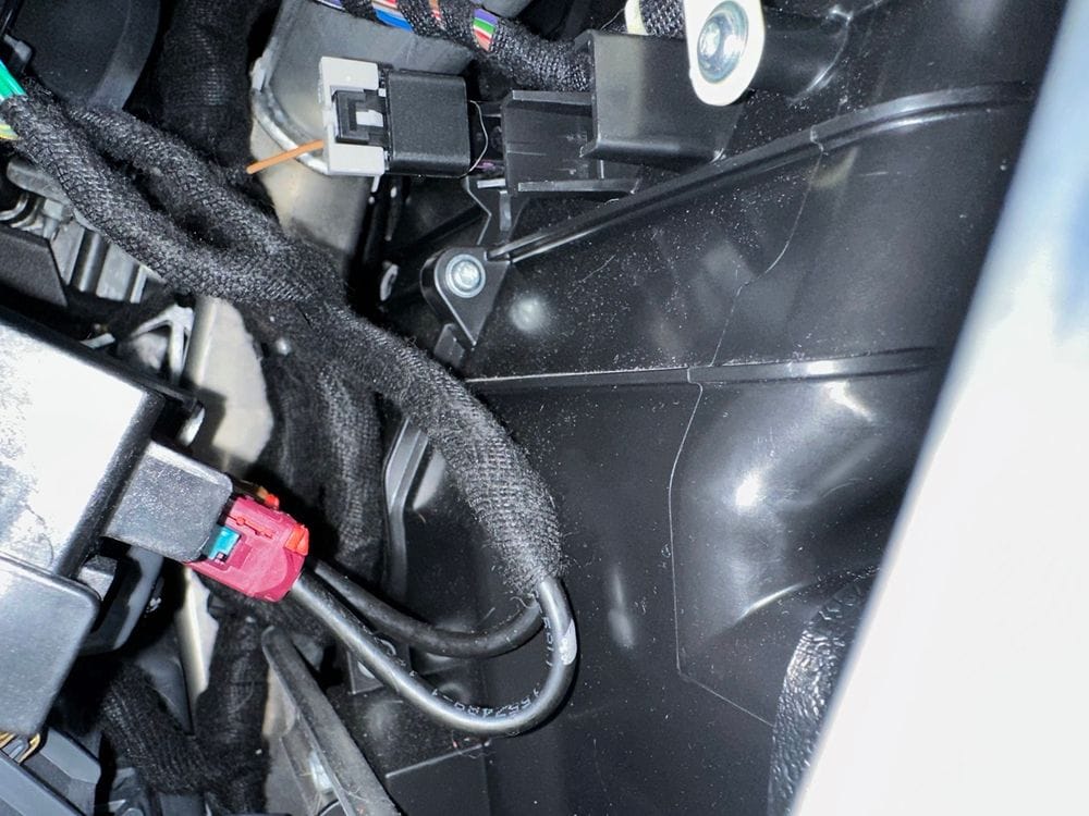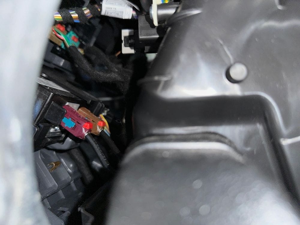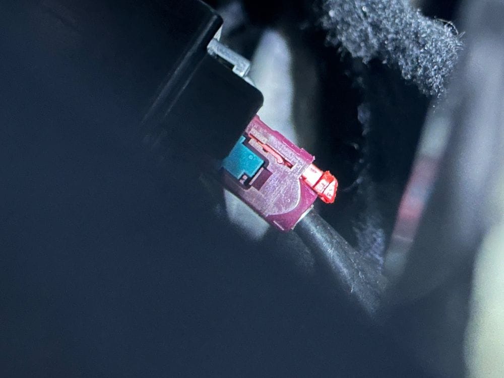 Identify the connector. Shine a flash light into the console and find the purple/violet connector. This is the cellular antenna connector (although this guide is for the Bolt, according the FAKRA chart, Purple/Violet is the industry color code for cellular/GSM so this could work in other vehicles too).